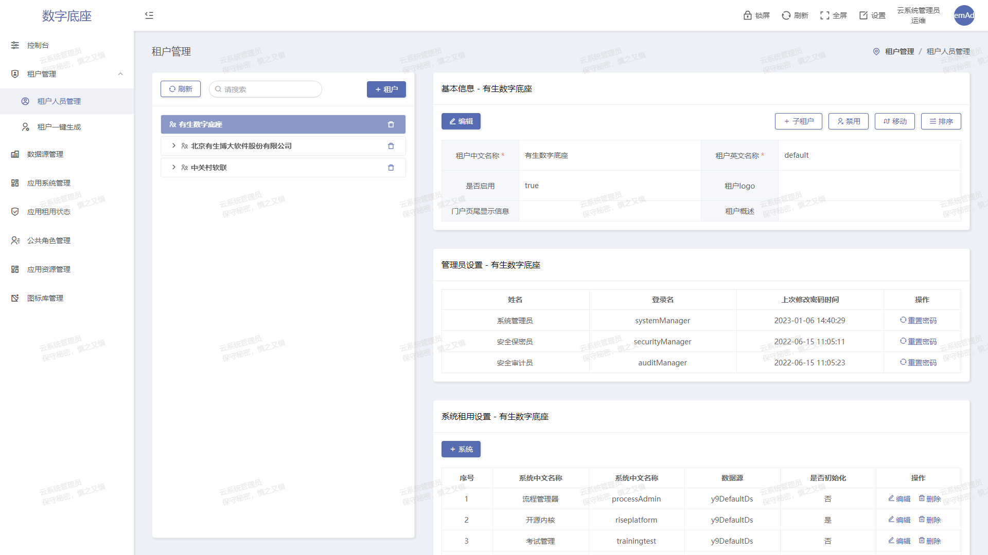 多租戶模式服務(wù)與政府單位和大型國央企,支持多級管控,權(quán)限下放。云模式以多租戶為底層,支持線上租賃服務(wù)模式開展自身業(yè)務(wù),高效便捷。